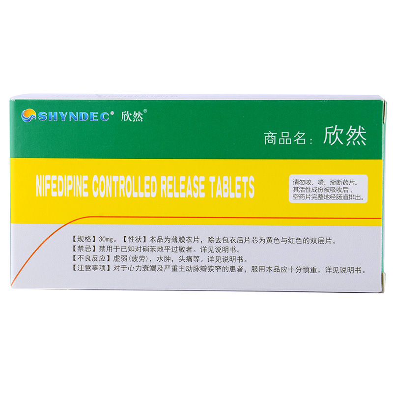 首页>全部商品>专科用药>心脑血管>高血压>欣然硝苯地平控释片30mg*12片