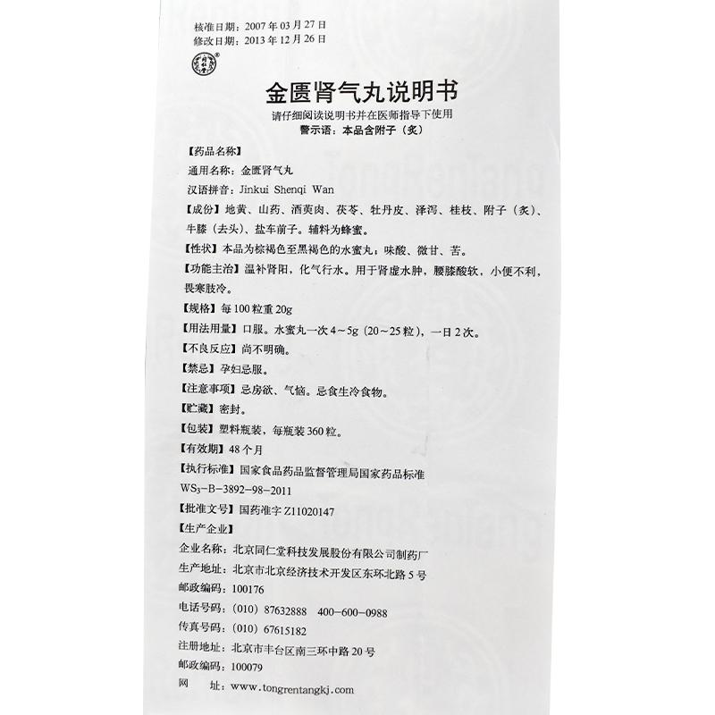 首页>全部商品>专科用药>男科用药>补肾壮阳>同仁堂 金匮肾气丸 360丸*1瓶/盒