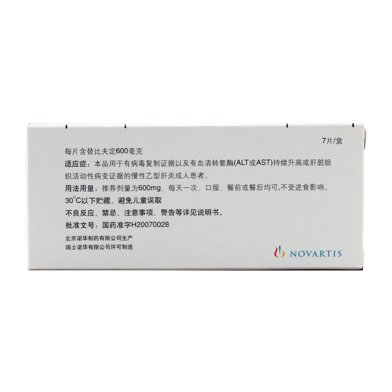 首页>全部商品>专科用药>肝胆科药>乙肝用药>素比伏 替比夫定片 600mg*7片/盒