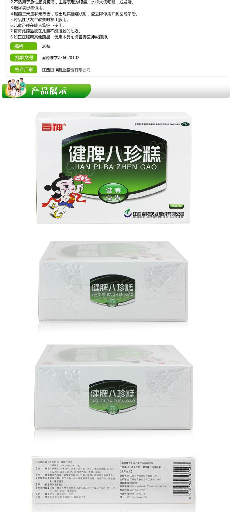 【药品名称】百神 健脾八珍糕