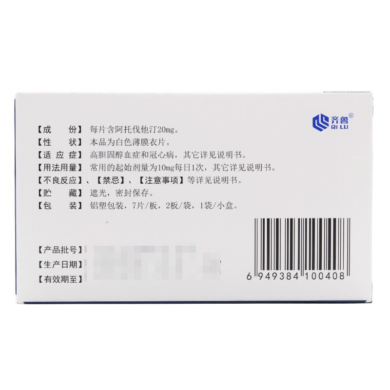 首页>全部商品>专科用药>心脑血管>高血脂>美达信 阿托伐他汀钙片 20mg*14片/盒