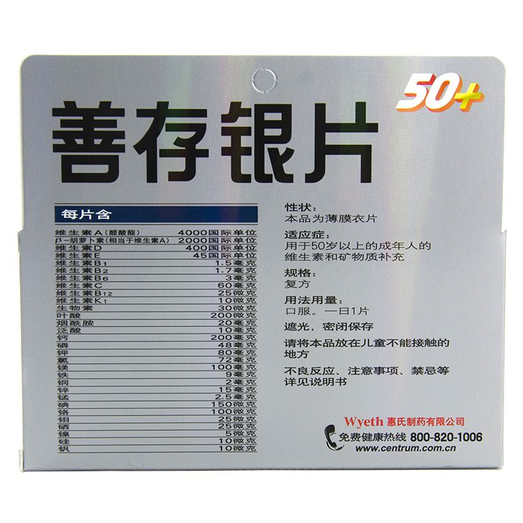 首页>全部商品>日常用药>维矿补充>补充维矿>善存银片100片(多维元素片29-II)