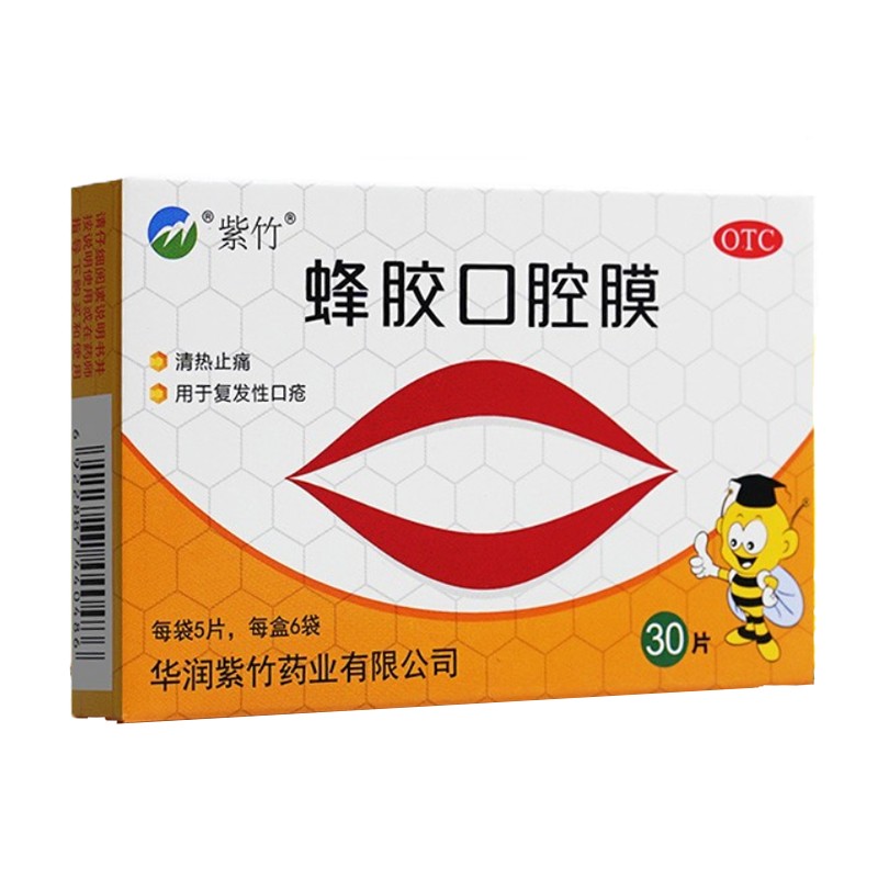 30片大规格】紫竹蜂胶口腔膜5片*6袋清热止痛用于复发性口疮药