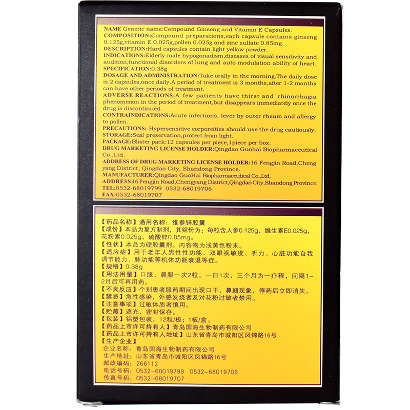 首页>全部商品>专科用药>男科用药>阳痿早泄>宜利康维参锌胶囊12粒